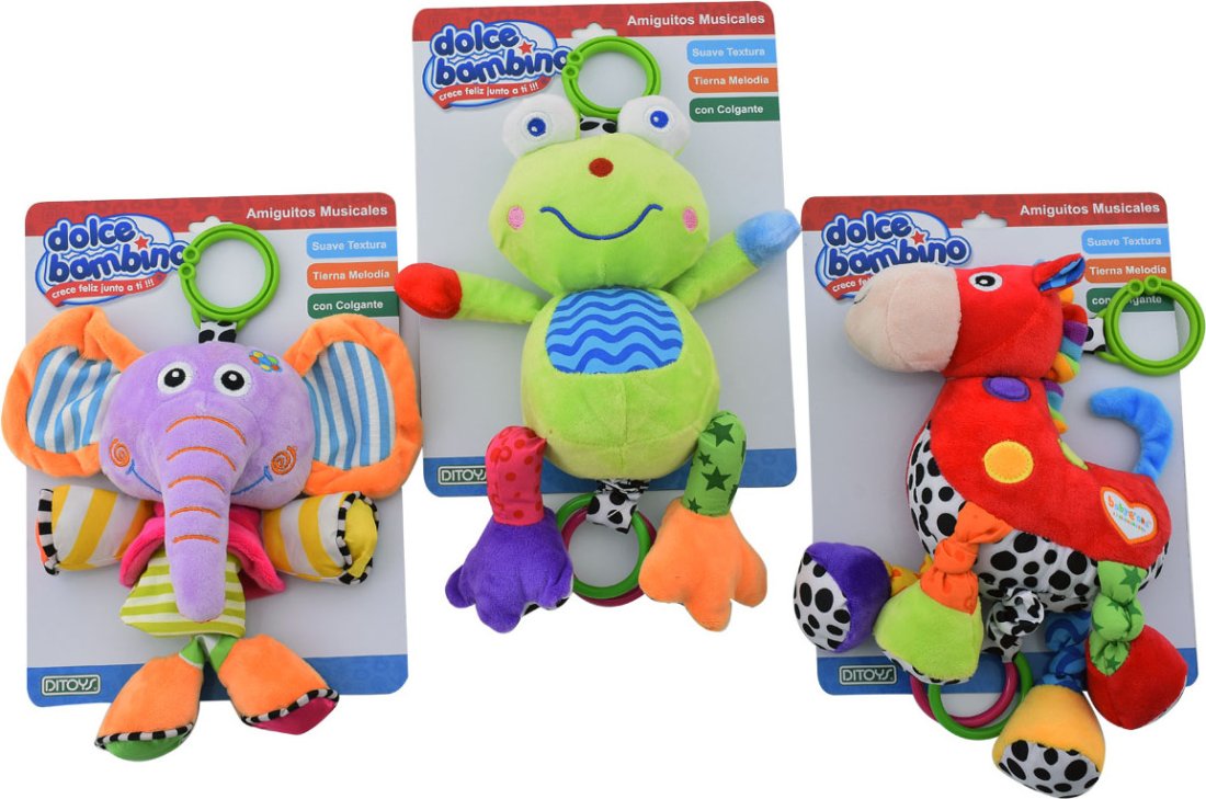 Suave textura. Tiernas melodías y con colgante para poder dejarselo al alcance en su cuna.
