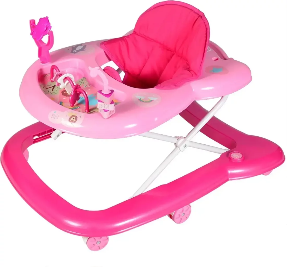 Plástico reforzado de mayor calidad, colores vivos a prueba de sol Estructura reforzada y de mayor tamaño 7 juegos de ruedas de 6 cm Bandeja con sticker Bandeja con posa vaso con fuga de líquidos Bandeja con juguetes sensoriales Regulación en altura (Máxima 36cm) Agarre trasero para función caminador Asiento de tela con acolchado y respaldo (Se puede extraer para lavar) Diseño exclusivo BIPO Peso 3kg Medida: 6860 CM (LargoAncho)