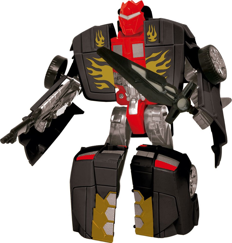 Un moderno auto que se convierte en un robot super héroe preparado y listo para hacer realidad todas las fantasías de los niños.