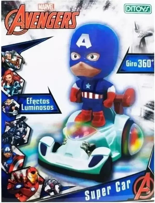 Especificaciones Técnicas Super car efectos luminosos Capitan America Ditoys 2458 Giro 360º Efectos luminosos Funciona con 3 pilas AA. Edad recomendada- +3 años