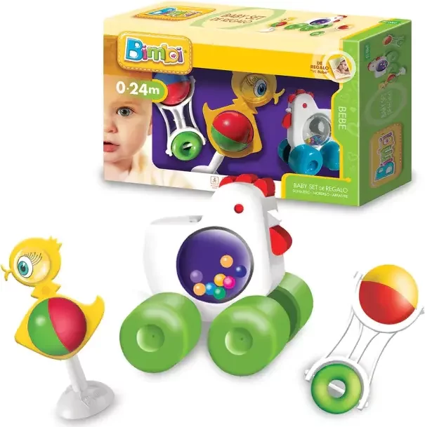 Los Baby Set, debido a su simplicidad estimulan el juego libre e individual, lo que permite al niño explorar el juguete a su tiempo y representarlo mentalmente desde su funcionamiento. La linea BIMBI acompaña al bebé en todas las etapas de su desarrollo. Los colores fuertes, las divertidas formas y sonidos, estimulan el desarrollo de las percepciones visuales y auditivas. A partir de los 4 meses, el niño comienza a desarrollar sus habilidades motrices. Este juguete estimula: