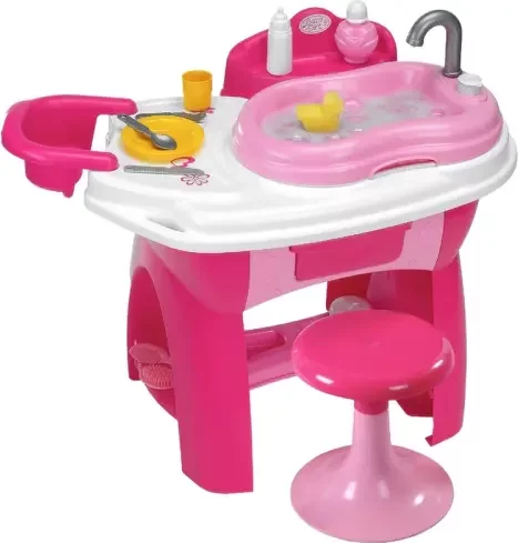 Es un excelente juego de rol para las nenas que quieren jugar a ser mamás con su propio bebé. Posee múltiples funciones para el cuidado del bebé, bañera con agua de verdad, cambiador de pañales y sillita para darle de comer. Además, un cajón y estantes para armar el set con toda su variedad de accesorios.