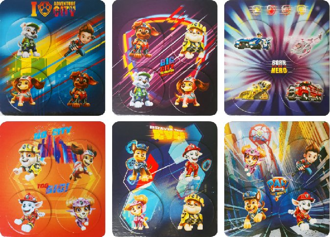 - Tamaño de cada cartón: 15,5cm de ancho x 17,5cm alto.