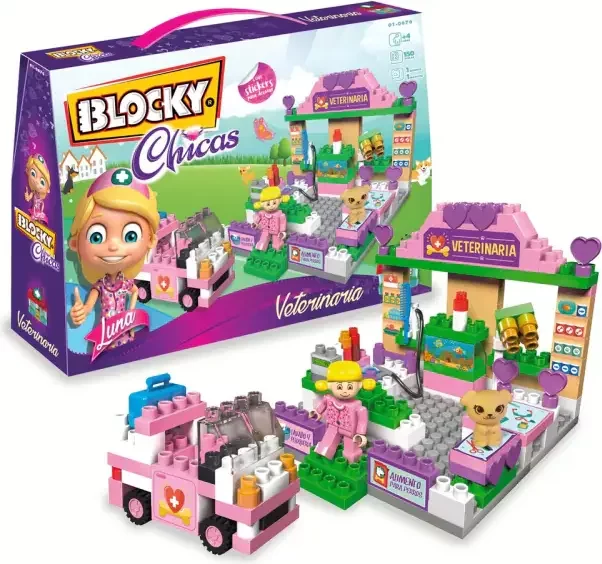 Si te divertiste con Blocky House, la nueva línea "Chicas" te va a encantar. Conocerás a las dos inseparables amigas de Luna: Zoe y Maia. Podrás armar la veterinaria de Luna y su mascota, la florería de Maia y el food truck de Zoe. ¡Tenelas a todas!