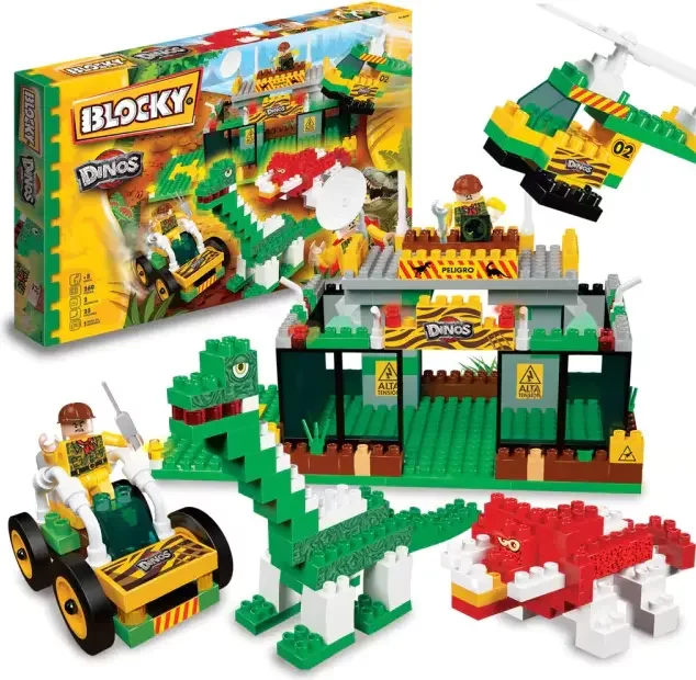 La nueva linea Blocky Dinos te lleva a disfrutar de nuevas aventuras en un mundo lleno de dinosaurios, donde convive el pasado con el presente junto con la ciencia!