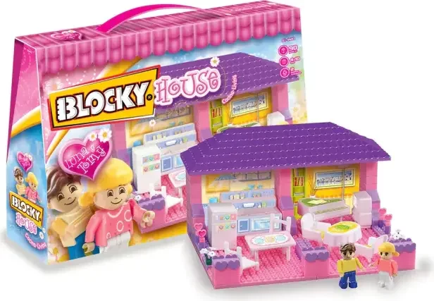 Con este colorido Blocky House las nenas podrán construir el living y la cocina de la casa que tanto soñaron para Luna y Tomy. Contenido: