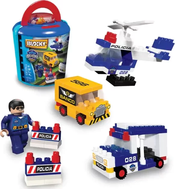 ¡La acción y diversión continúan con la tan esperada línea Blocky Súper Policías! Divertite armando miles de aventuras, preparate para construir el cuartel general, la comisaria, los más veloces vehículos y los súper helicópteros. Con Blocky, ¡armá miles de aventuras!
