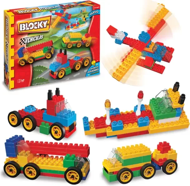 Con Blocky los chicos pueden armar miles de aventuras y ahora podés construir todos los vehículos que te imagines. Blocky estimula la creatividad, la imaginación, incentiva el razonamiento y favorece la interacción con otros chicos. Incluye: