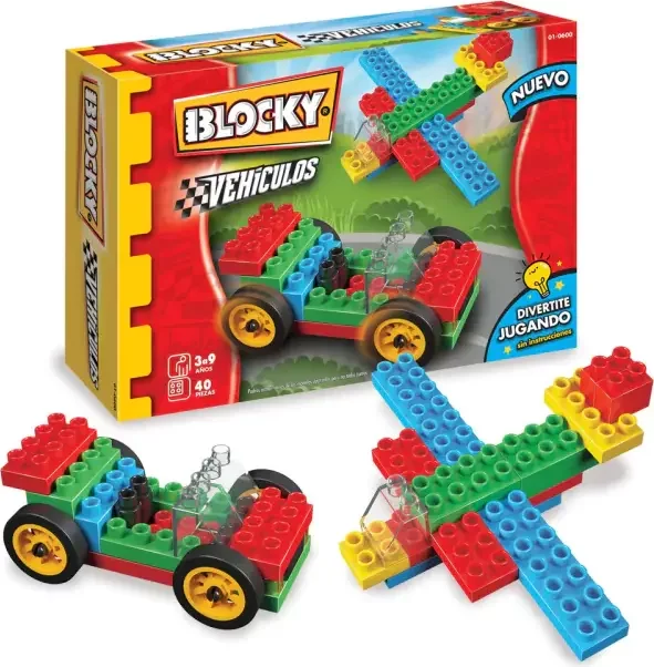 Con Blocky los chicos pueden armar miles de aventuras y ahora podés construir todos los vehículos que te imagines. Blocky estimula la creatividad, la imaginación, incentiva el razonamiento y favorece la interacción con otros chicos. Incluye