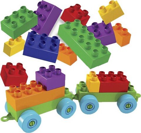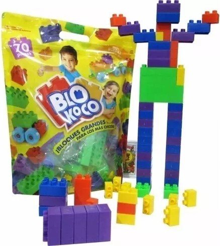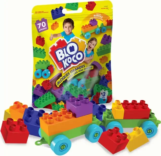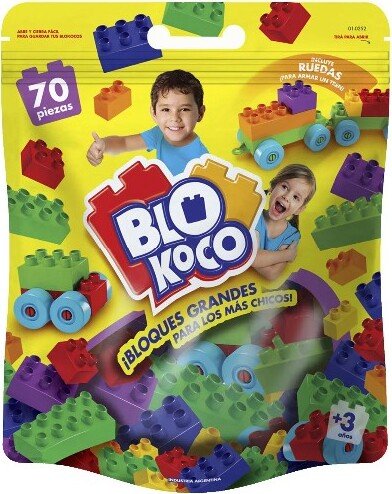 Bloques grandes para los más chicos. El más económico del mercado. Presentación DOY-PACK con abre y cierra fácil para jugar y volver a guardar las piezas. Incluye: