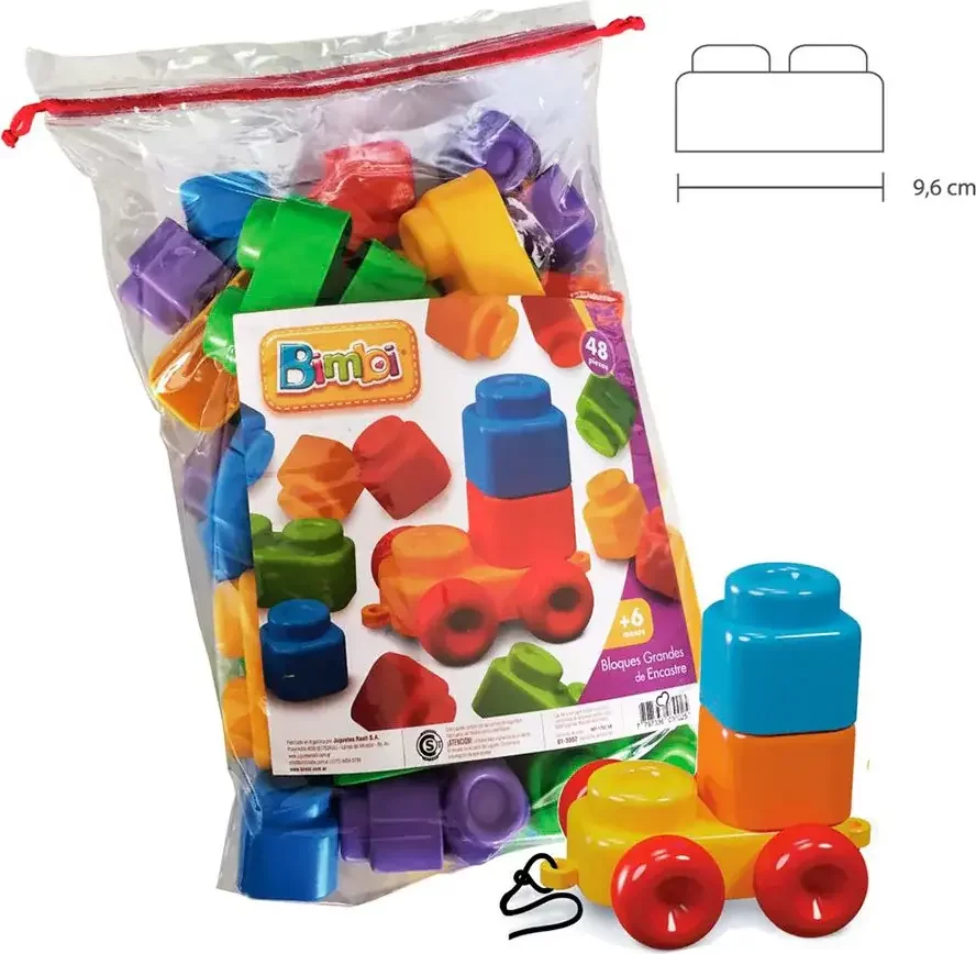Bloques de colores apilables con puntas redondeadas, ideales para la etapa donde los niños disfrutan tomando los objetos a su alcance. El bebé podrá jugar con total seguridad y confianza ya que el producto es el adecuado para que a su edad pueda apilarlos facilmente. Incluye: 48 bloques Dimensiones bloque: 9,6 x 5 cm