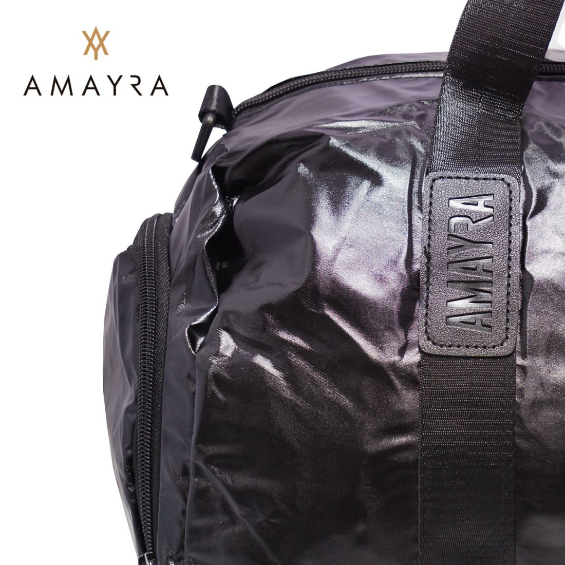 - Correa regulable y desmontable en color negro con logo Amayra grabado