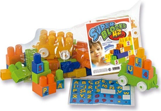 Muchos bloques para divertirte creando los que tu imaginación te lleve a hacer con 42 piezas.