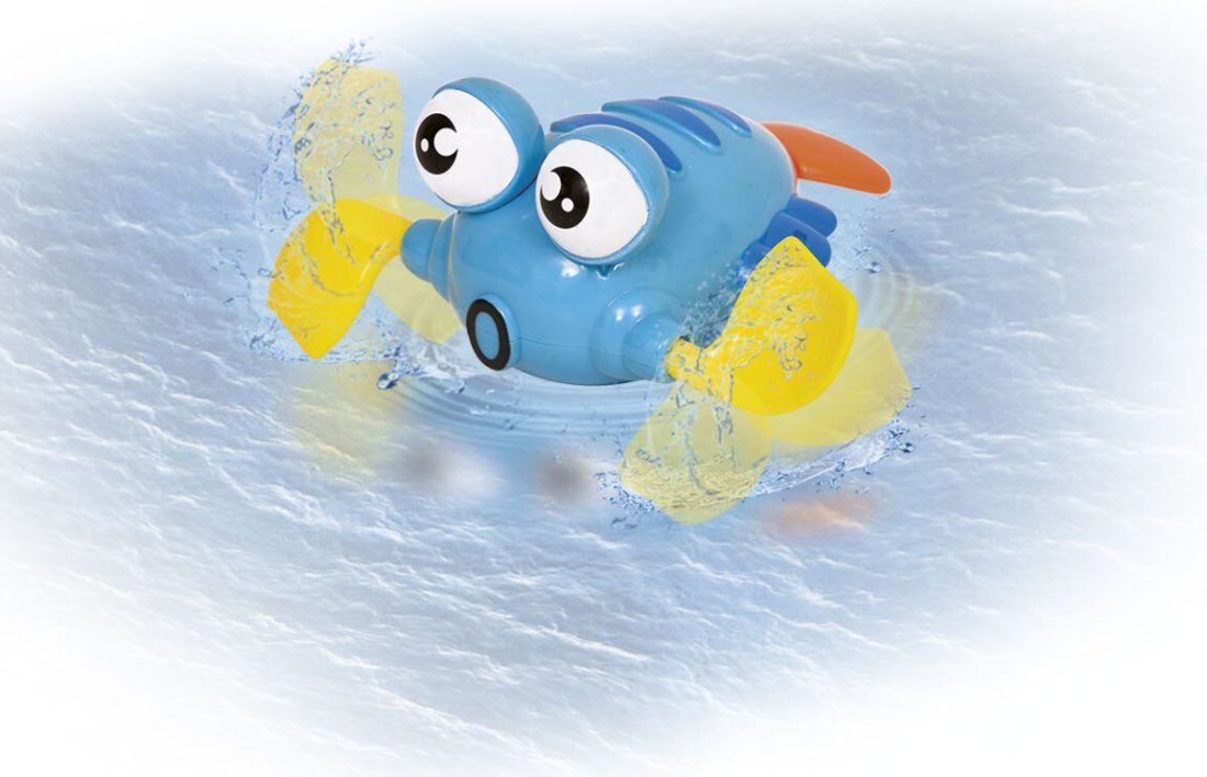 Juguete a cuerda para jugar en el agua y atrapar la atención del niño con sus movimientos y colores.