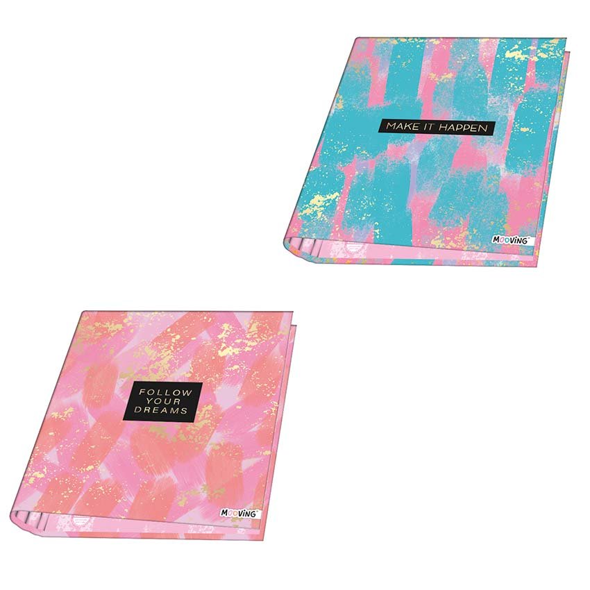 • La carpeta A4 2x40 de Mooving es una carpeta escolar de tamaño A4 con dos aros de 40 mm de lomo.
