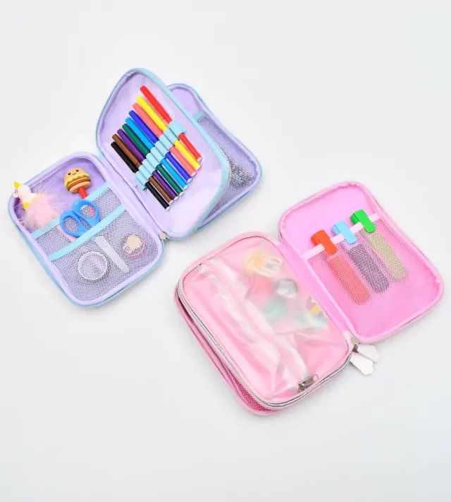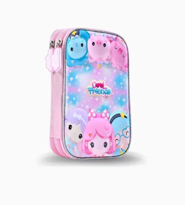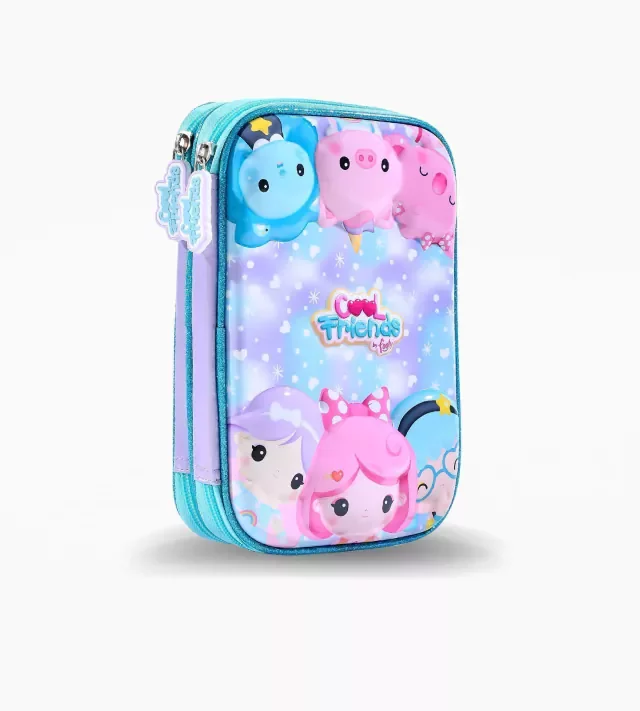 Cartuchera de 2 pisos desplegable, con estampa sublimada, frente estampado y termoformado