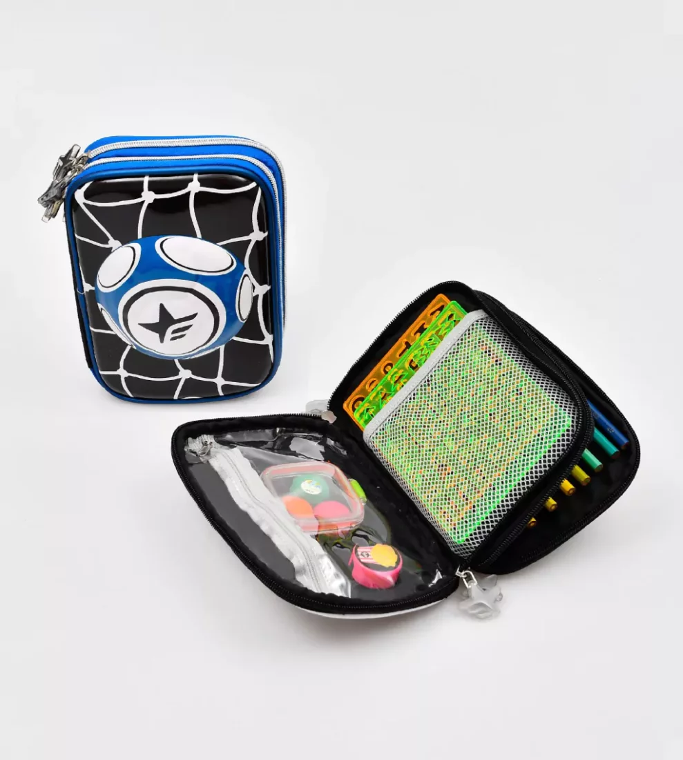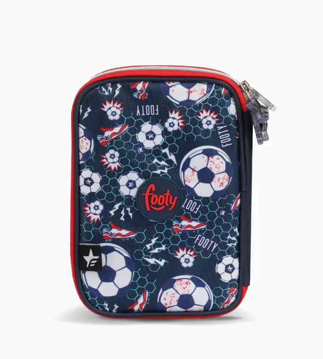Cartuchera de 2 pisos desplegable, con estampa sublimada, frente estampado y termoformado
