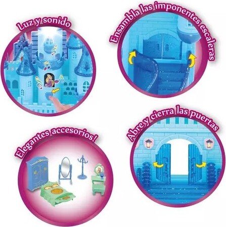 La princesa vive en un castillo encantador, que cuenta con gran cantidad de torres e imponentes escaleras. Una de las cosas que mas le gusta a la princesa es pasear por los increíbles jardines del castillo mientras suenan mágicas melodías que iluminan la torre principal. ¡¡¡Hechízate con el encanto de este fabuloso castillos y se parte del maravilloso universo de Estilo de Princesas!!!