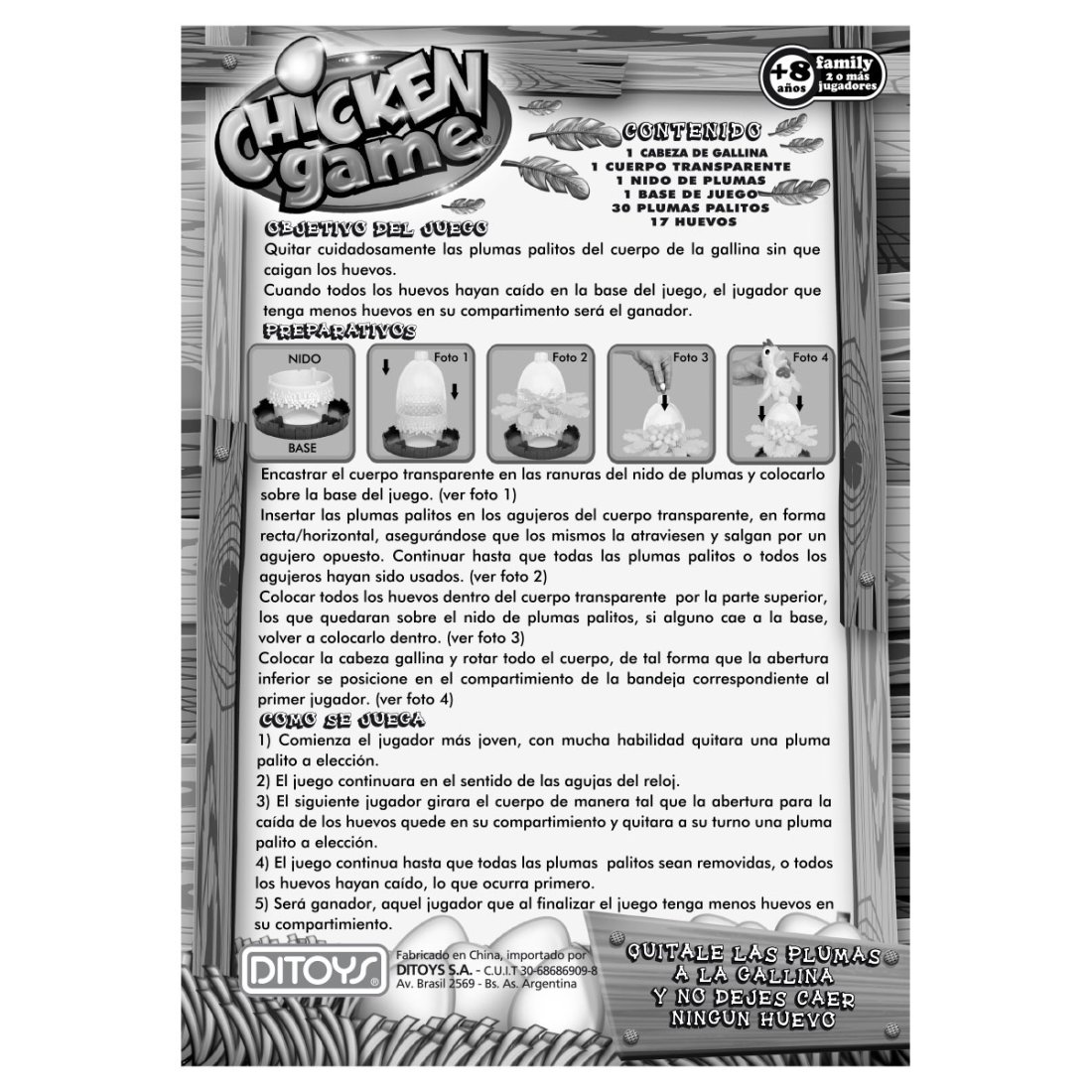 Chiken Game. Quitale las plumas a la gallina y no dejes caer ningún huevo.