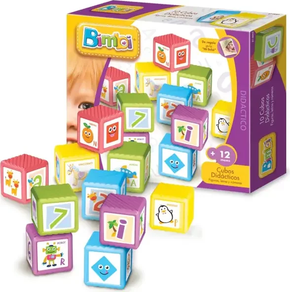 Guía "Mi Bebé" 10 cubos apilables para aprender las letras, figuras y números.