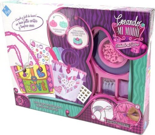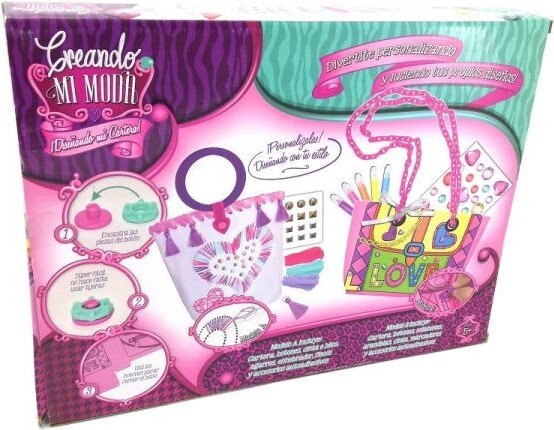 Sin necesidad de tijeras ni costuras, los más pequeños de la casa, podrán diseñar su propio bolso o cartera con éste juego, que despierta la creatividad y estimula la motricidad.