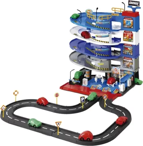 El Maxi Garage 4 niveles tiene todas las funciones indispensables: surtidores de gasolina, elevador de reparación, lavadero de autos y autoservicio. Los chicos pueden subir los autos en el montacargas y luego deslizarlos por las 3 rampas con sus manos (los autos no se mueven solos), se sentirán en una estación de servicio real con sus sonidos de bocina y sirenas. Incluye 2 autos.