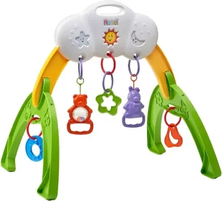 Jugando en Activity Gym estimula los sentidos, moviliza sus brazos y piernas. Fortalece la coordinación entre ojos, manos y pies y mejora las destrezas del pensamiento.