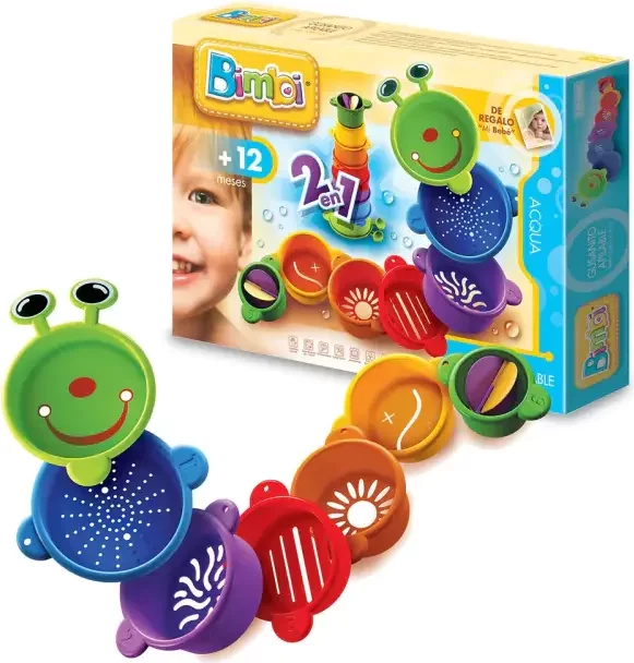 7 piezas apilables que forman un divertido gusanito para jugar en el agua o en la arena y apilar.