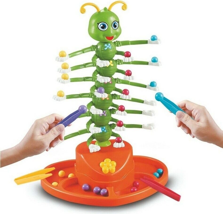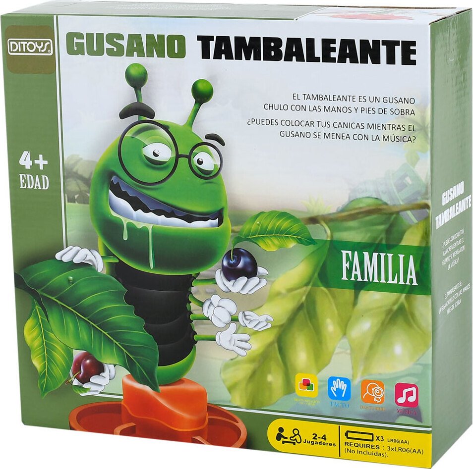 Mientras el gusano baila al sonido de la música puede tratar de colocar en sus manos las canicas.