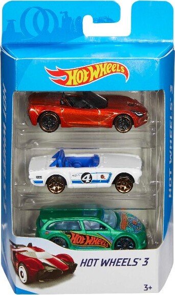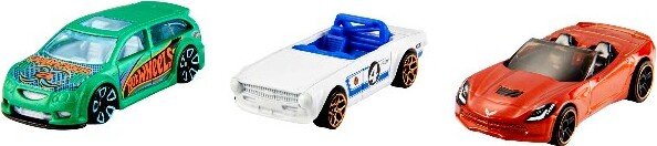 Cada pack incluye tres vehículos Hot Wheels. ¡Cada pack de tres es perfecto para comenzar una colección de coches o una ampliación genial para coleccionistas experimentados! Vehículos clásicos y geniales a escala 1:64 con un estilo auténtico y detalles llamativos. ¡Un gran regalo para niños y coleccionistas!