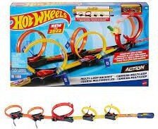 ¡Este conjunto Multi-Loop Raceoff de Hot Wheels ofrece carreras frenéticas y llenas de loopings! Vuela por el circuito y atraviesa los loopings para conseguir puntos. Sé el primero en cruzar el looping gigante y haz que se rompa para que los demás corredores muerdan el polvo. Con este divertido circuito pueden jugar tanto uno como varios jugadores. En el modo de un solo jugador, el circuito puede extenderse más de 60cm, con cinco emocionantes loopings en un mismo tramo. Incluye un vehículo de Hot Wheels. Combina este conjunto con otros conjuntos para vivir más aventuras de carreras y acrobacias (los otros conjuntos se venden por separado). No compatible con todos los vehículos de Hot Wheels. Los colores y la decoración pueden variar.