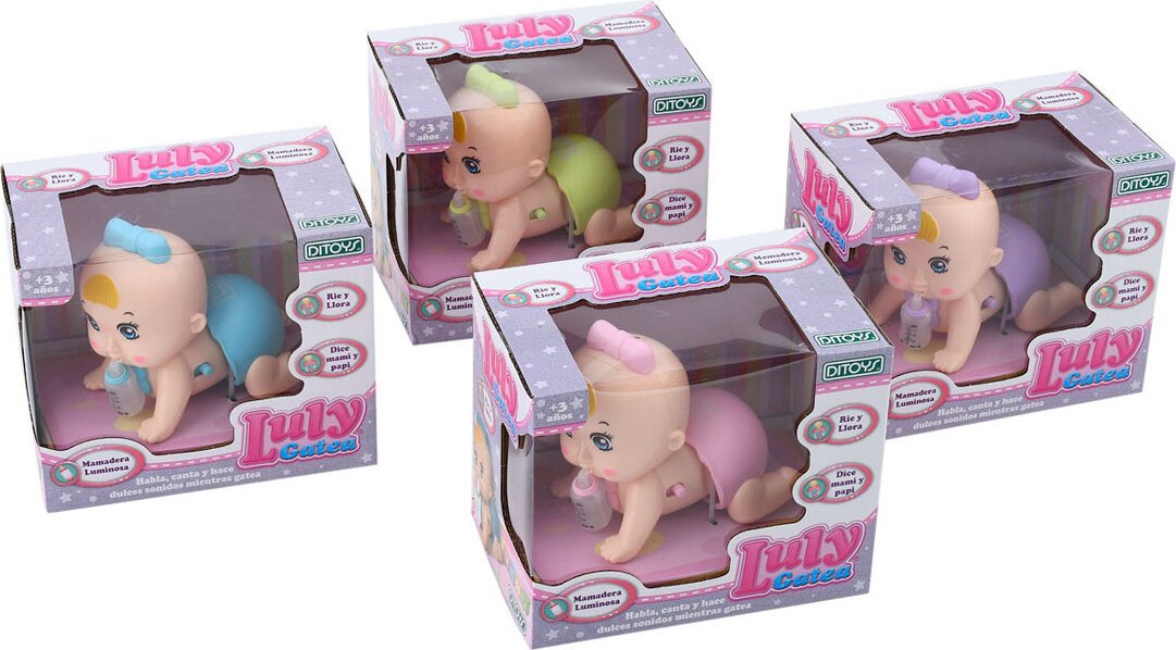 Rie y llora y dice Mami y Papi. Con mamadera Luminosa. + 3 años.