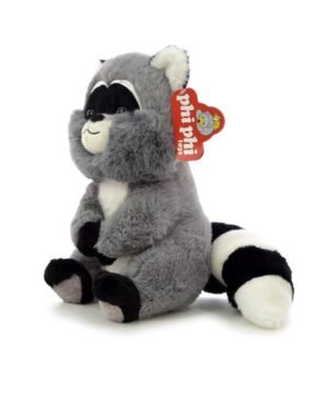 Hermoso peluche mapache sentado, se ve super tierno, suave para adornar, jugar y regalar.