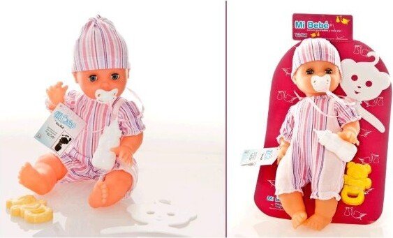 Bebé + Biberón + Chupete + Ropa +Percha +Sonajero Bebé de cuerpo plastico.