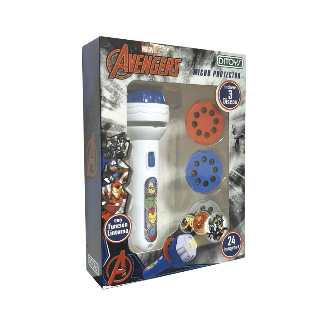 Micro proyector diseño Marvel Avengers. Incluye 3 discos, con 24 imágenes en total.