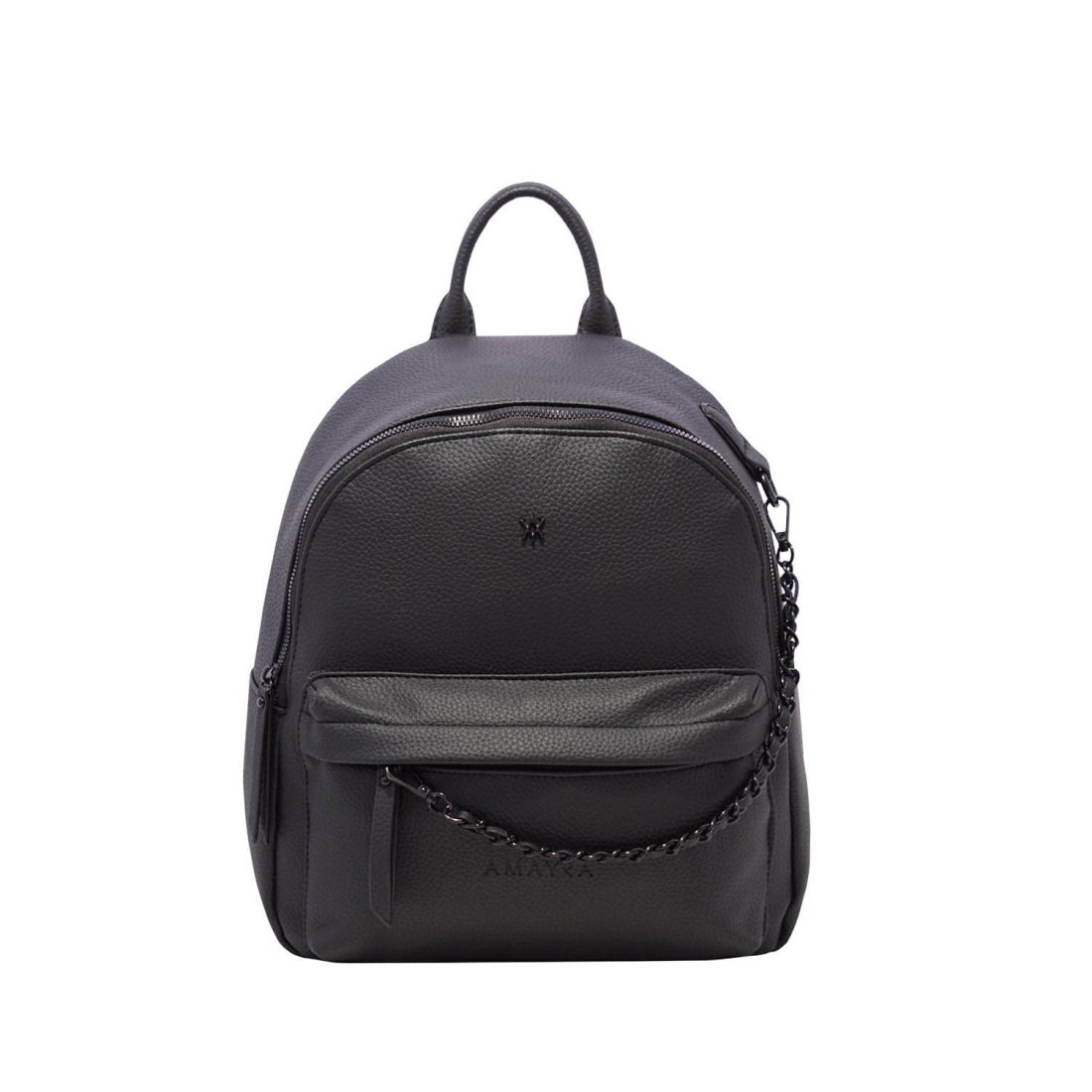 - Un bolsillo frontal con cierre con detalle de cadenas