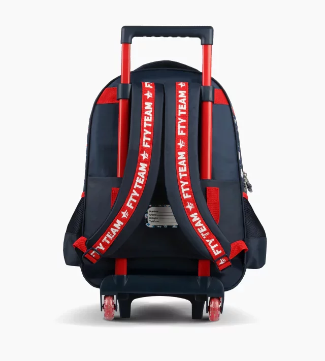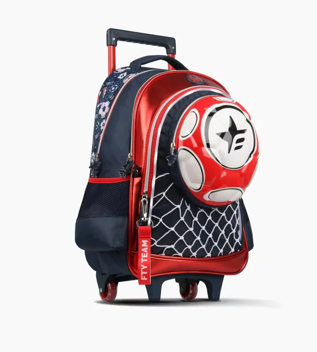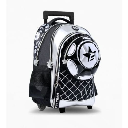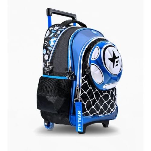 Mochila Footy Pelota Fútbol 3D Con luz Led Carro 18″ – Ruedas de goma y carro extensible semi automático. Ideal para uso diario con 3 compartimentos. Tiras reforzadas y bolsillos laterales para botella de agua. Con sintético metalizado, estampa y bolsillo de pelota termoformada. Material: Poliéster.