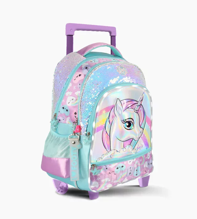 - Ruedas de goma y carro extensible semi automático, ideal para uso diario con 3 compartimentos con cierre.
