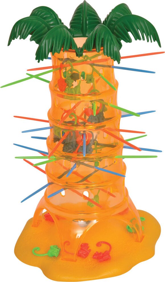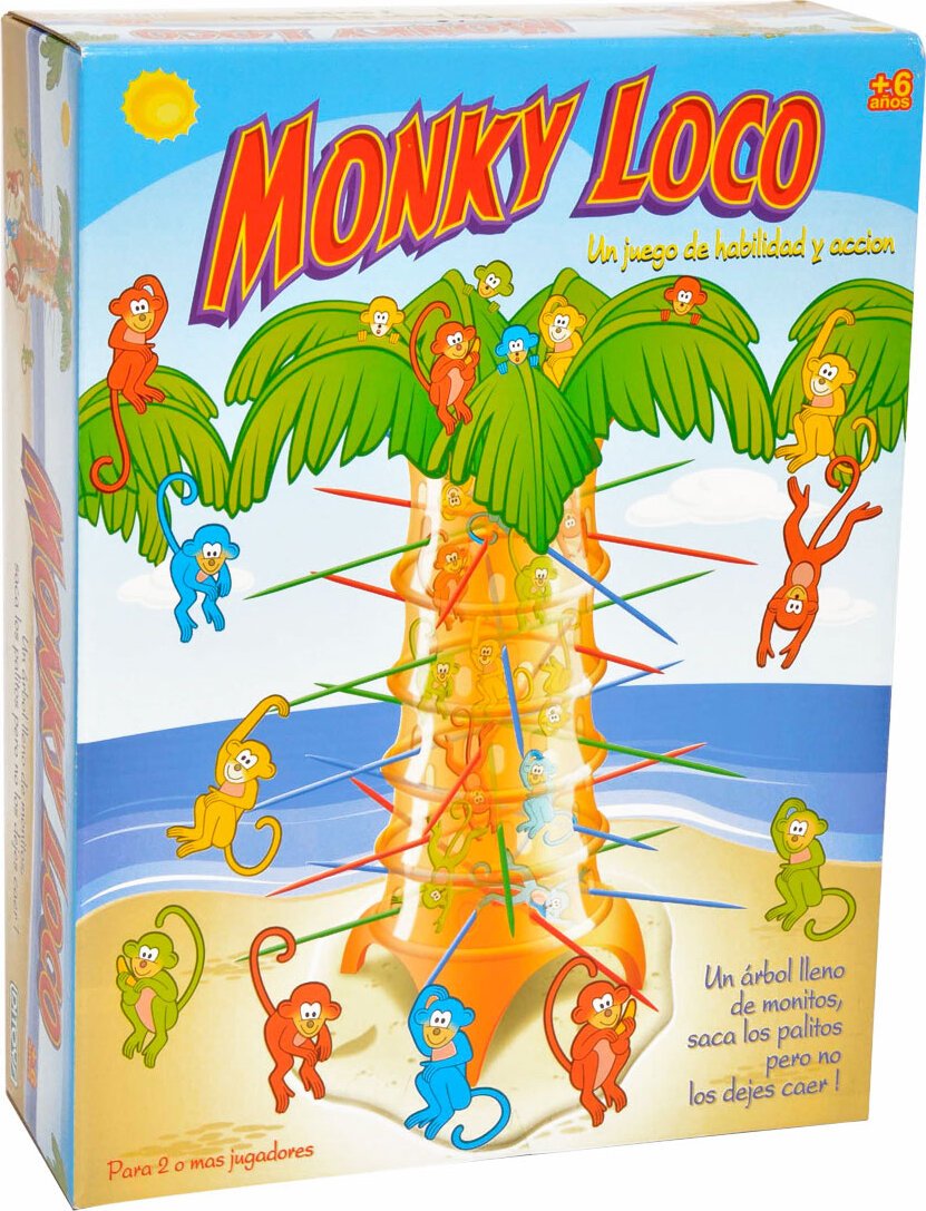Un juego para compartir momentos muy divertidos. Un árbol lleno de monitos que con sus colas se encuentran sujetados a palitos haciendo un increible equilibrio. Deberan retirar a cada uno de ellos procurando que se caiga la menor cantidad de monitos.