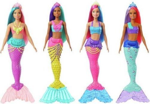 La sirena de Barbie Dreamtopia estimula la imaginación y la sumerge en los cuentos de hadas. Su cola y corpiño coloridos están decorados con detalles de fantasía, y su aleta aporta otro chapuzón de colores. Dóblala por la cintura para contar un montón de aventuras: nada en el mar o siéntate para tomar el sol. Después, recrea tus sueños e imagina muchos más, porque cuando una niña juega con Barbie, ¡imagina todo lo que puede llegar a ser! Incluye una sirena de Barbie Dreamtopia. La muñeca no puede tenerse en pie ni nadar por sí sola. Los colores y la decoración del juguete pueden ser distintos de los mostrados.