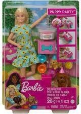 ¡Barbie va a celebrar una fiesta para sus cachorritos, y las jóvenes imaginaciones están invitadas a unirse a la diversión! Viste a cada cachorro con su sombrero de fiesta, y luego ayuda a Barbie a llenar el molde de pastel con uno o los dos colores de la masa incluida. ¡Empuja la palanca para ver cómo sube la masa y se convierte en un adorable pastel en forma de hueso! Las niñas pueden decorar las golosinas con los adornos de pastel incluidos y servirlas a los cachorritos de Barbie en coloridos cuencos de perrito. Hay una caja de regalo que esconde una pelota para sus cachorros, y el cachorro más grande puede masticar cuando las niñas le aprietan la cola. Con unas características tan dulces, este conjunto de fiesta para cachorros Barbie es un gran regalo para niñas de 3 a 7 años. La muñeca no puede tenerse en pie por sí sola. Los colores y la decoración pueden ser distintos de los mostrados.