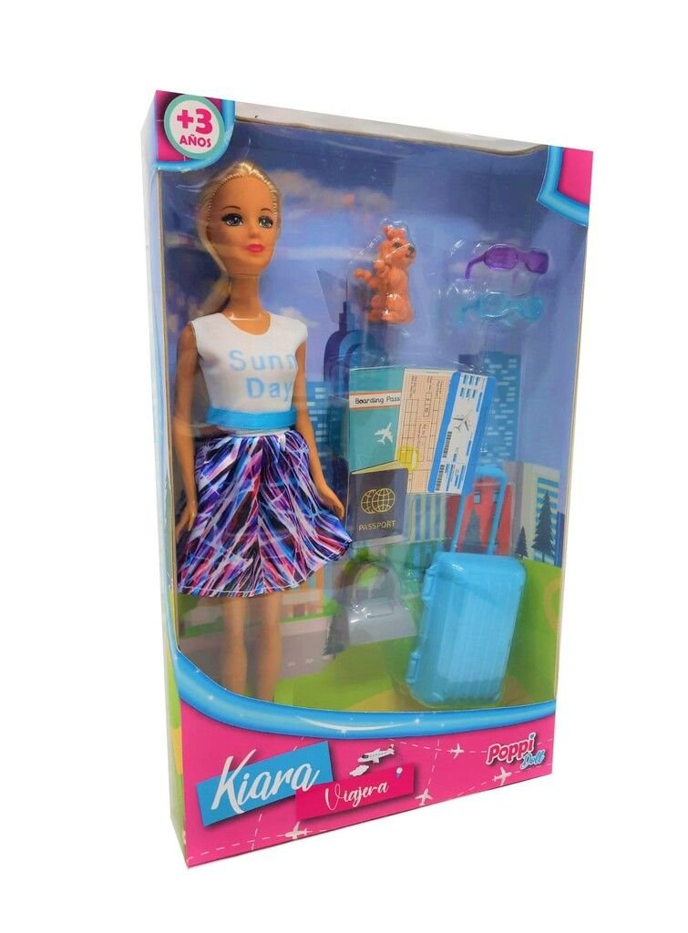 Kiara se va de viaje… acompáñala en sus aventuras, muñeca con set viajero.