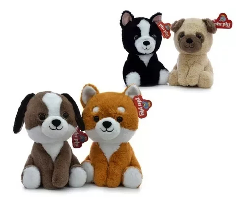 Perros de Peluche, marca Phi Phi Toys. Es el compañero ideal para los más chicos de la casa, se podrán divertir y dormir con este suave y excelente peluche de 30 cm. Son 4 Razas: Shiba Inu, Pug, Border Collie y San Bernardo.
