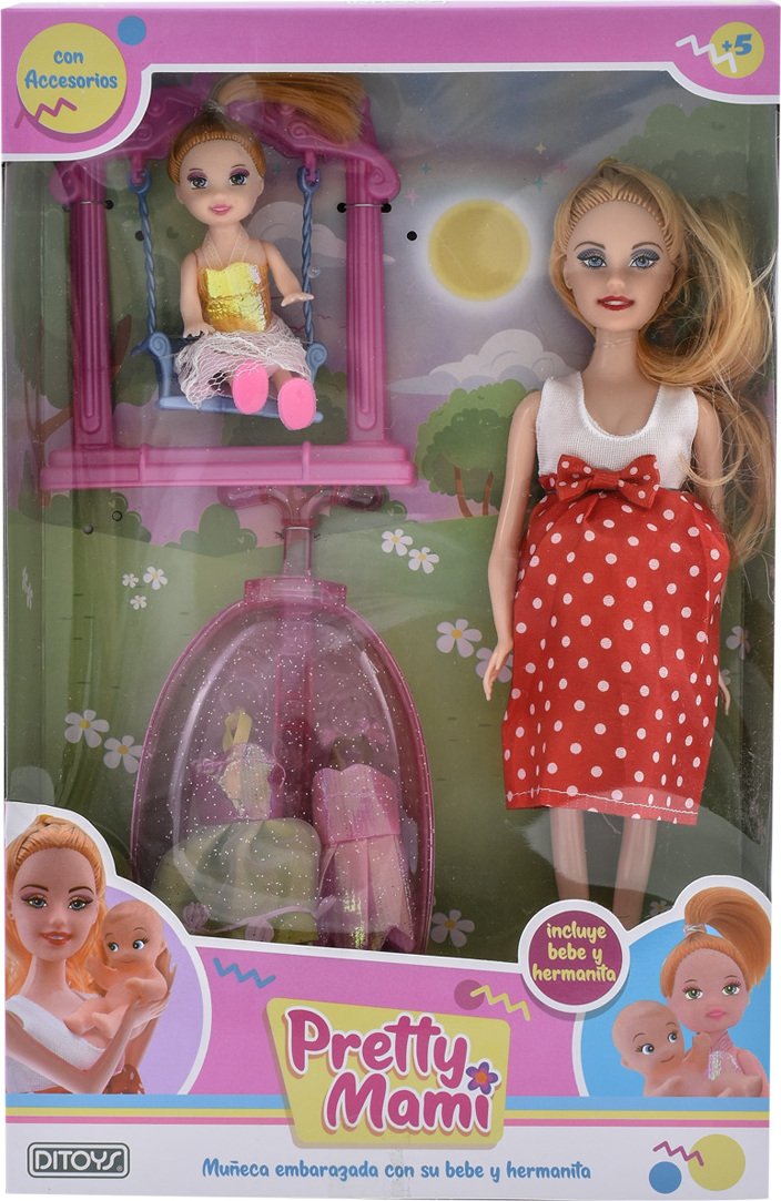 Un set super completo. La muñeca embarazada con su bebe y también con su hermanita !!!.