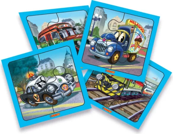 Clasicos Colectivos, Tren, Policia, Helados. 4 dibujos distintos, para aprender jugando.