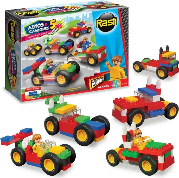 Con la nueva línea Autos & Camiones de Rasti vas a poder armar muchos más modelos. ¡Primero elegís el chasis, después tu modelo y a jugar! Incluye muñeco y guía de armado súper fácil.