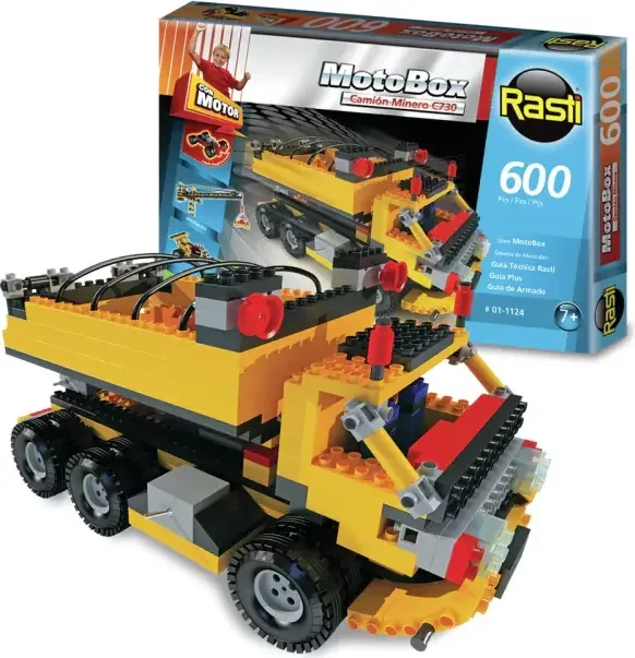 Desafiá los caminos y llegá más rápido con el Camión Minero Rasti. También podrás armar un el super Dragster y una Grua Pluma. ¡Con la línea Motobox, dale vida a tus creaciones!
