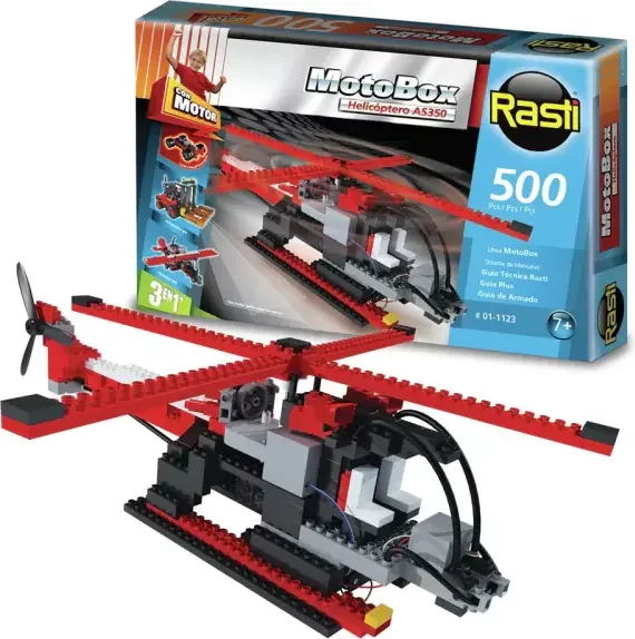 Armá y jugá con el super helicóptero Rasti. También podrás armar el Autoelevador y el Ultraliviano. Con la línea Motobox, ¡dale vida a tus creaciones! Contenido: