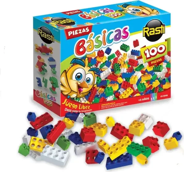 100 piezas basicas. Edad: +3 años. Medida Packaging: 30 x 21 x 7 cm. Juguete NO TOXICO, fabricado sin ftalatos ni colorantes.