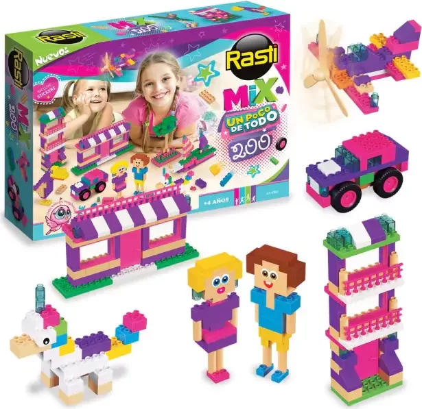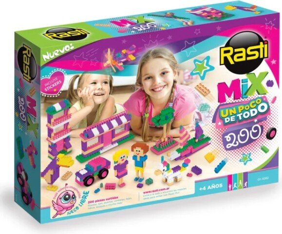 El nuevo Rasti MIX 200, cuenta con la más amplia variedad de piezas Rasti: ruedas, ejes, puertas, ventanas, tejas, hélices, engranajes, bloques y mucho más! Contiene 200 piezas de colores varios.